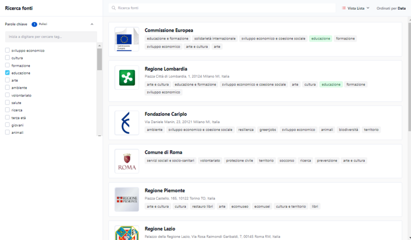 Se non hai trovato una fonte che ti aspettavi di vedere tra i bandi abbinati per il tuo progetto non temere, puoi inserirla manualmente!