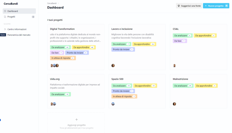 Se vuoi lavorare a uno di questi bandi con uno dei tuoi colleghi aggiungilo tramite le impostazioni sul tuo workspace!